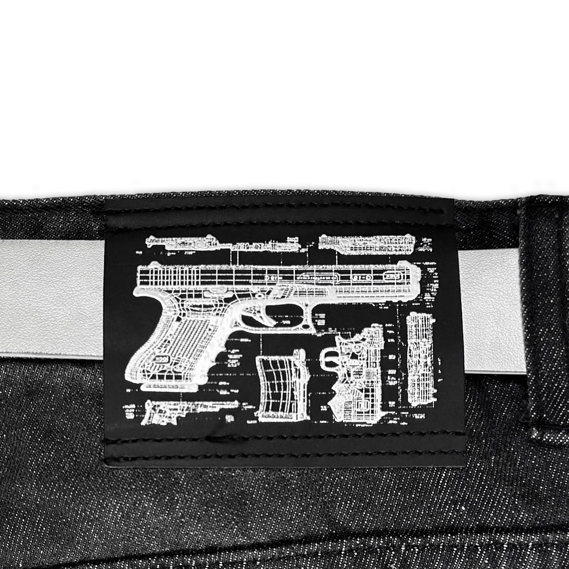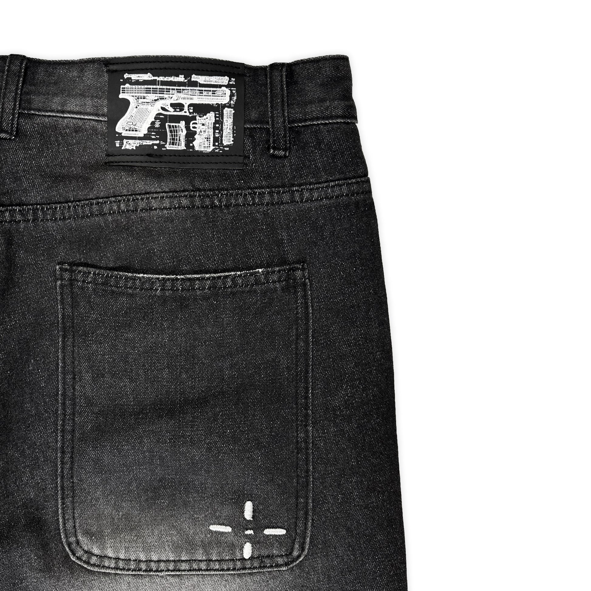 Back by popular demand, the infamous Shooter Jeans return for their third release — and they’re better than ever. This latest version features upgraded sizing, a fresh square pocket design, and a subtle reticle shape for a signature touch. We’ve also introduced a custom Glock blueprint belt loop, adding to the unique detailing that sets these jeans apart. After two sell-out runs, this new version is highly anticipated — don’t miss your chance before they’re gone again.