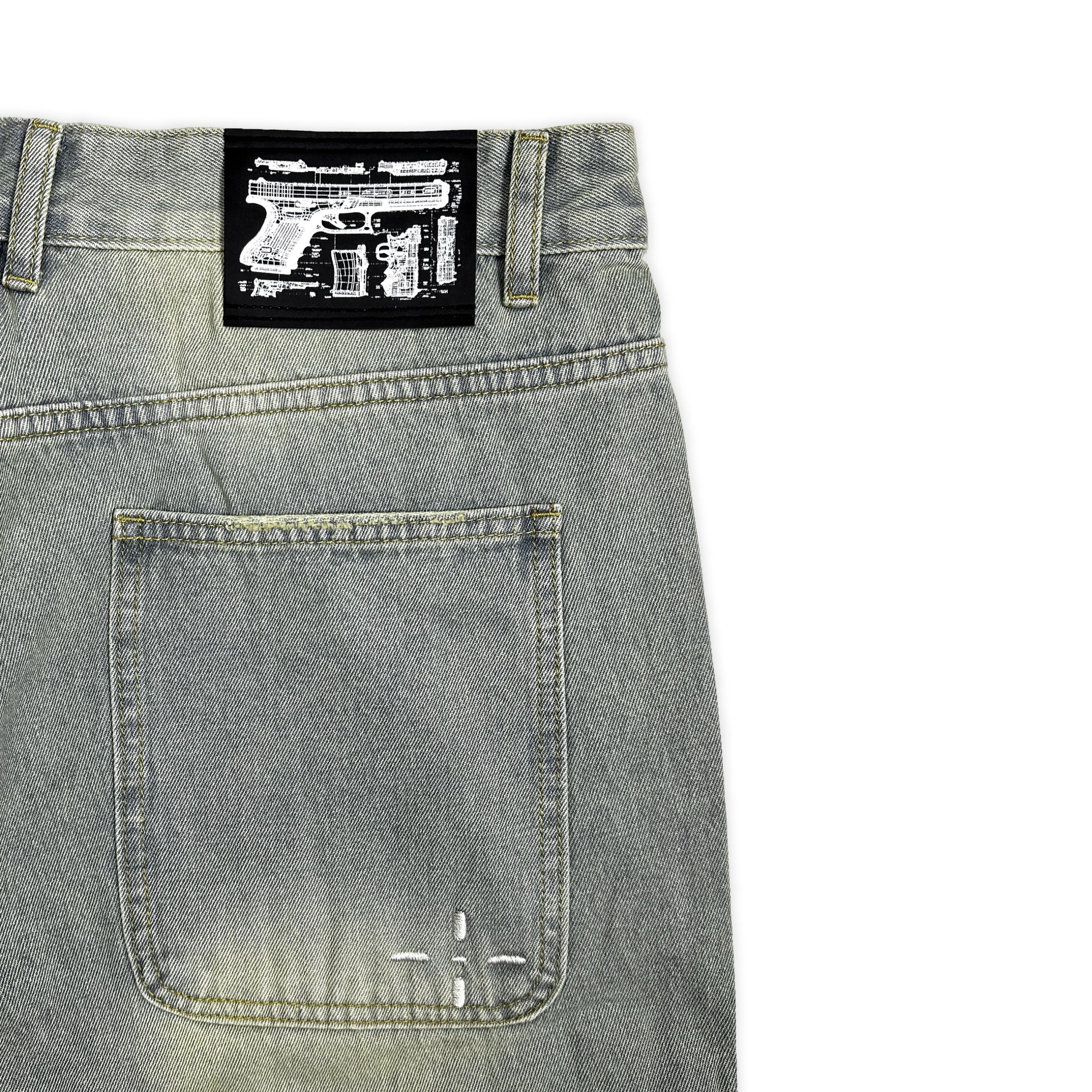 Back by popular demand, the infamous Shooter Jeans return for their third release — and they’re better than ever. This latest version features upgraded sizing, a fresh square pocket design, and a subtle reticle shape for a signature touch. We’ve also introduced a custom Glock blueprint belt loop, adding to the unique detailing that sets these jeans apart. After two sell-out runs, this new version is highly anticipated — don’t miss your chance before they’re gone again.
